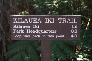We split up after climbing out of the crater. Henry hiked around the other side of the loop back to the car while Kathy and Sally went on to the Visitor Center. Here are the signs showing how much farther Sally and Kathy had to go, and how far the whole trail is from our starting point: