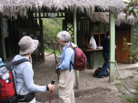 Here is the trail leading away from Wiñaywayna's terraces, heading toward the entrance to the Machu Picchu reserve, that we just barely made by the cutoff time. Here you can see Hernán taking care of our paperwork at the gate.